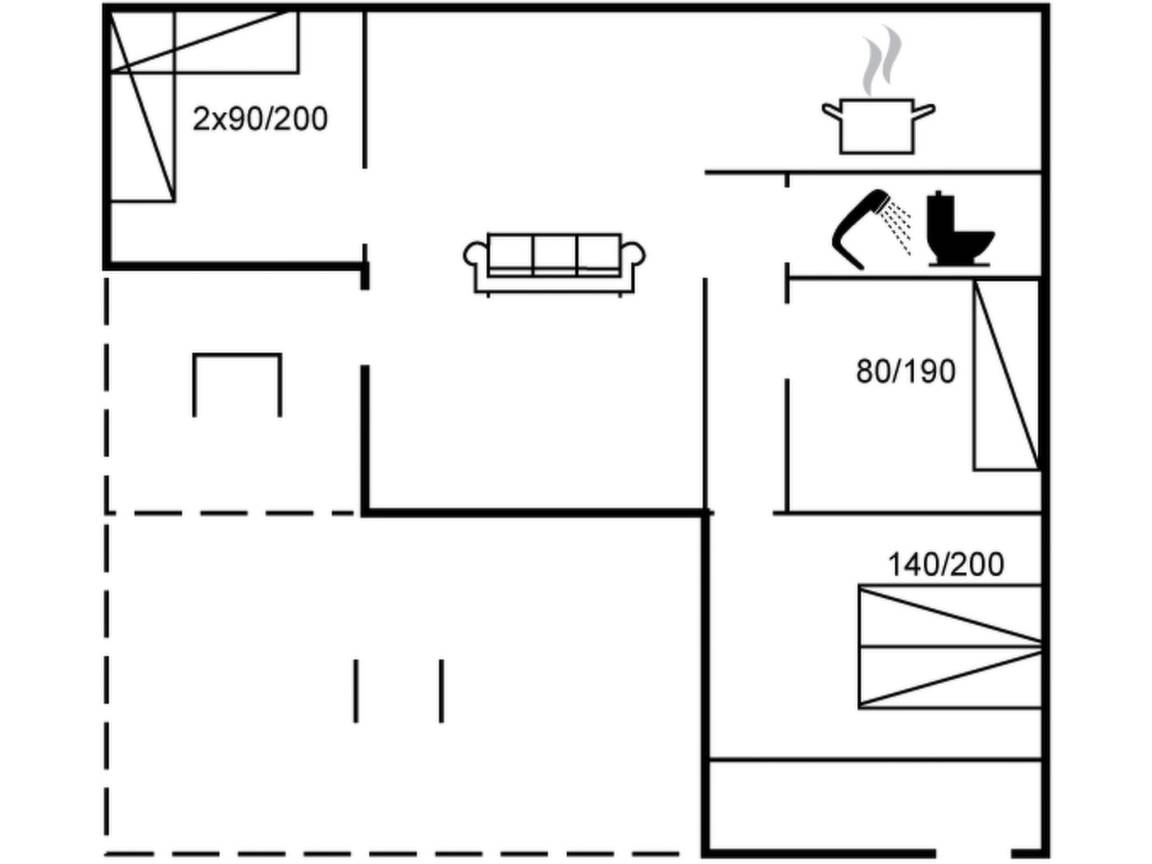 "Fastulf" - 300m from the sea", 3-Zimmer-Haus 100 m². Objekt geeignet für 8 Erwachsene. Wohnzimmer mit TV, Radio und DVD. 1 Zimmer mit 1 Doppelbett. 1 Zimmer mit 1 Doppelbett. 1 Zimmer mit 1 Doppelbett. Küche (Backofen, Geschirrspüler, 4 Glaskeramikplatten, Mikrowelle, Tiefkühler). Dusche/WC, Whirlbadewanne. Obergeschoss: offene Galerie mit 2 Betten.