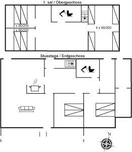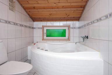 , Küche(Herd(Induktion), Kaffeemaschine, Mikrowelle, Spülmaschine, Tiefkühlschrank(1-59L), Kühl-/Gefrierkombination), Wohn-/Schlafzimmer(TV(Deutsch Fernsehsender, dänische Fernsehsender), DVD-Spieler, Stereoanlage), Schlafzimmer(Doppelbett), Schlafzimmer(Doppelbett), Schlafzimmer(2x Einzelbett), Badezimmer(Waschbecken, Dusche, Toilette, Waschmaschine), Badezimmer(Waschbecken, Dusche, Toilette), Whirlwanne(im Innenbereich, erwärmt, 2 Personen), Sauna(im Innenbereich, 4 Personen), Heizung(elektrisch), Terrasse, Gartenmöbel, Liegestühle, Luft-Luft-Wärmepumpe
