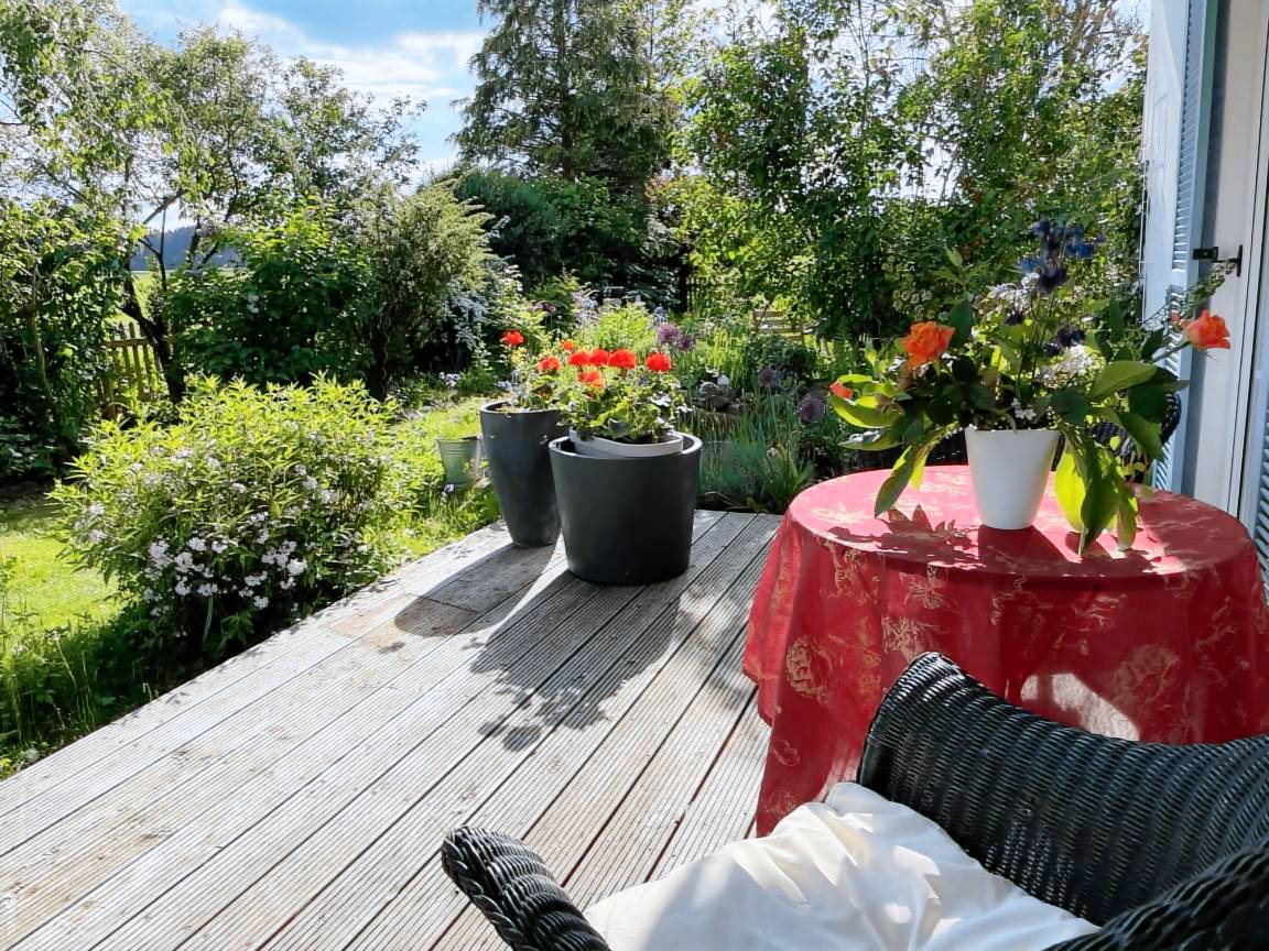 Charmantes Ferienhaus mit 3 Schlafzimmern und großzügigen Aufenthaltsräumen auf einem sehr ruhigen und eingewachsenem Grundstück mit großem Garten, herrlicher Terrasse und Blick auf die Berge aus dem Obergeschoß. Das Haus bietet eine hohe Privatspähre und viel Platz, liegt ruhig und dennoch zentral, nicht weit von See, Strand und Ortsmitte, Restaurants, Einkaufsmöglichkeiten.