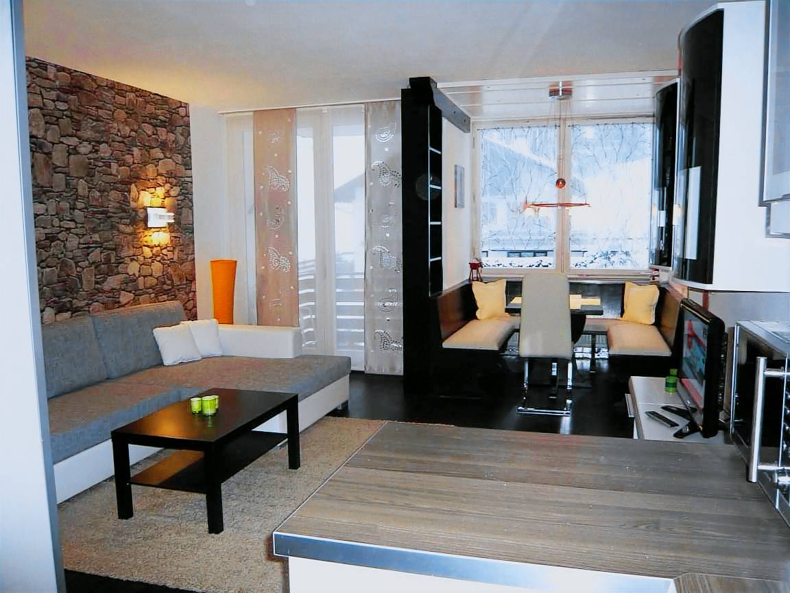 Die Wohnung Nr. 41 im 2. Stock mit Südbalkon hat einen herrlichen Bergblick auf die Allgäuer Alpen und Tiefenbach. Die 1-Raum-Wohnung ist modern eingerichtet. 1 Doppelbett (2 m), 1 Doppelbettcouch mit Couchtisch, offene Küche mit Eßecke., W-Lan.
