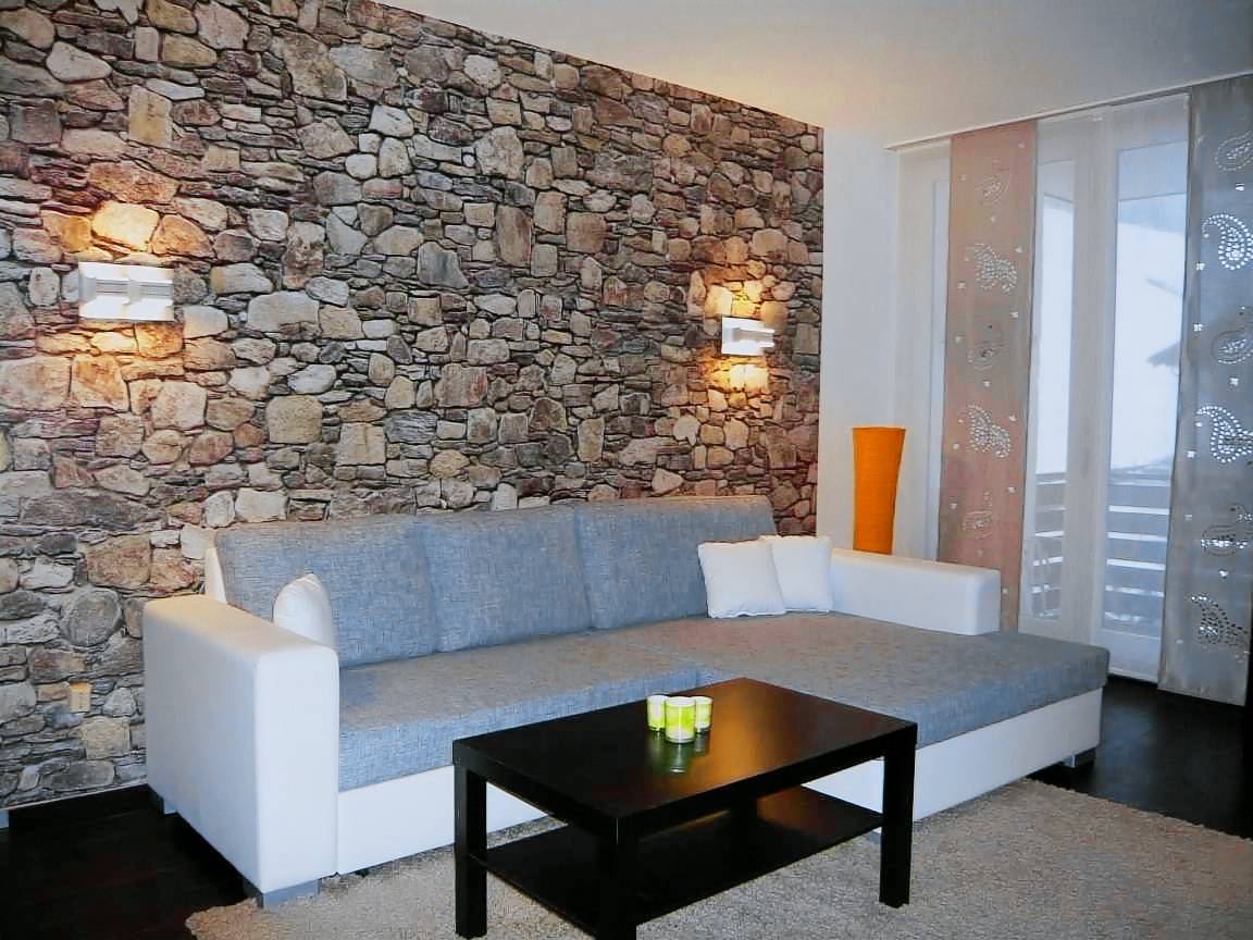 Die Wohnung Nr. 114 im 1. Stock mit Ostbalkon und Aussicht auf die Berge ist modern eingerichtet. 1 Wohn-/Schlafraum mit Doppelbettcouch, Eßecke, Couch und Couchtisch; 1 Schlafzimmer mit Ehebetten und Etagenbetten; Bad mit Dusche, Waschbecken und WC; Küche und Flur; PVC-Design-Boden; Allergiker geeignet; Garten;