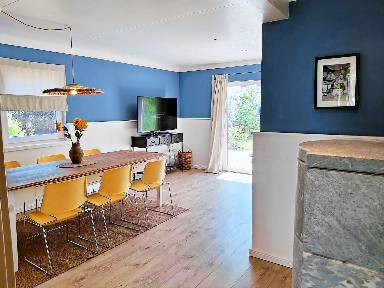 Charmantes Ferienhaus mit 3 Schlafzimmern und großzügigen Aufenthaltsräumen auf einem sehr ruhigen und eingewachsenem Grundstück mit großem Garten, herrlicher Terrasse und Blick auf die Berge aus dem Obergeschoß. Das Haus bietet eine hohe Privatspähre und viel Platz, liegt ruhig und dennoch zentral, nicht weit von See, Strand und Ortsmitte, Restaurants, Einkaufsmöglichkeiten.