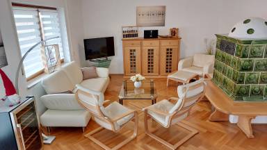 .2 separate Schlafzimmer, ein Doppelbett, zwei Einzelbetten und Schlafcouch im Wohnzimmer, Bettwäsche, Bügelmöglichkeit, Heizung. 2 Bäder mit WC und einmal Dusche, einmal Badewanne, Babyhochstuhl, Handtücher und Föhn. Wohnzimmer mit Essecke, Sitzgruppe, TV, W-LAN. Küche, Geschirrspüler, Ceranherd und Backofen, Kühlschrank mit separater Tiefkühleinheit.