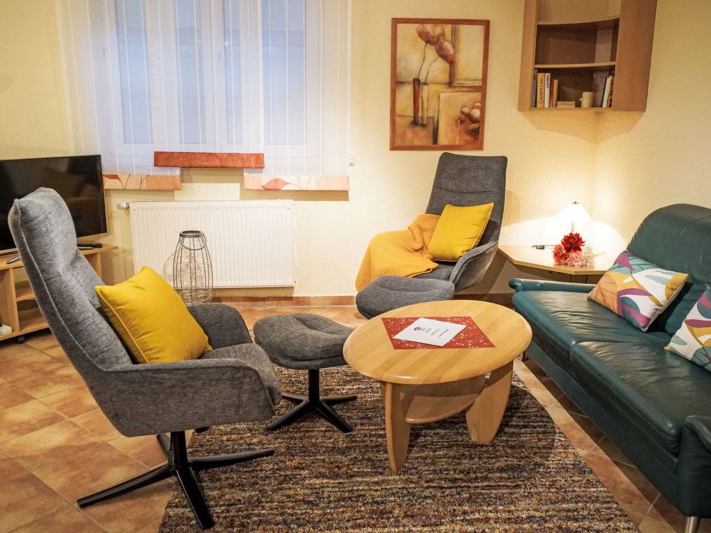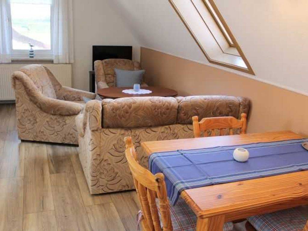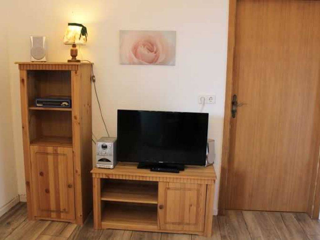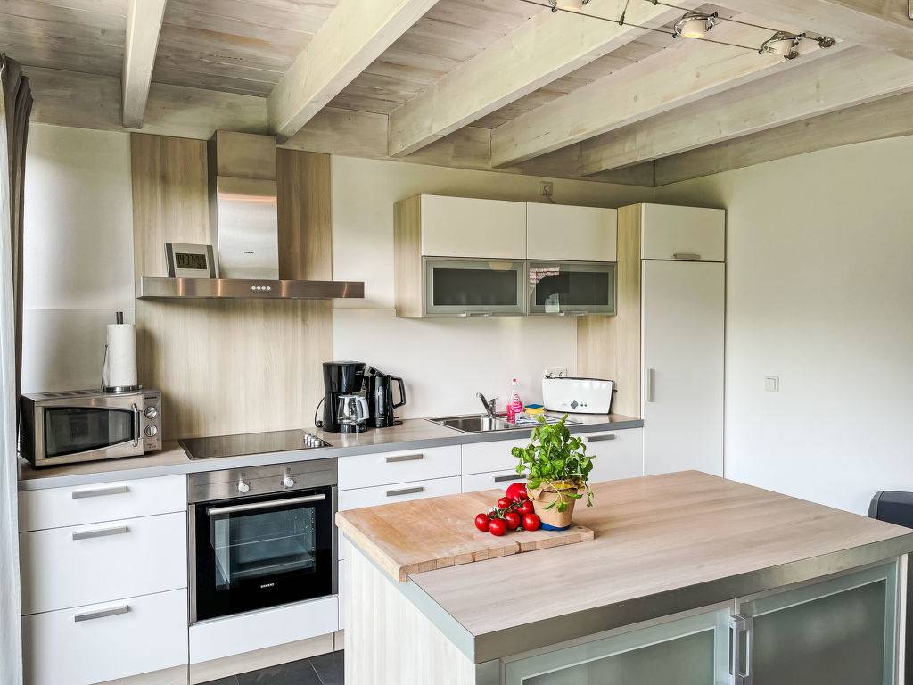 4-Zimmer-Wohnung auf 2 Stockwerken. Gemütlich eingerichtet: Wohn-/Esszimmer mit Panoramafenster mit Schwedenofen, Esstisch und Sat-TV (Flachbildschirm), Radio. Ausgang zur Terrasse. 1 Zimmer mit 1 Doppelbett (180 cm, Länge 200 cm). Kochnische (Backofen, Geschirrspüler, 4 Glaskeramikplatten, Toaster, Wasserkocher, Mikrowelle, elektrische Kaffeemaschine). Dusche/WC.