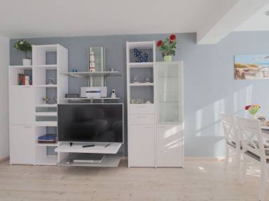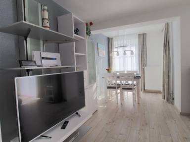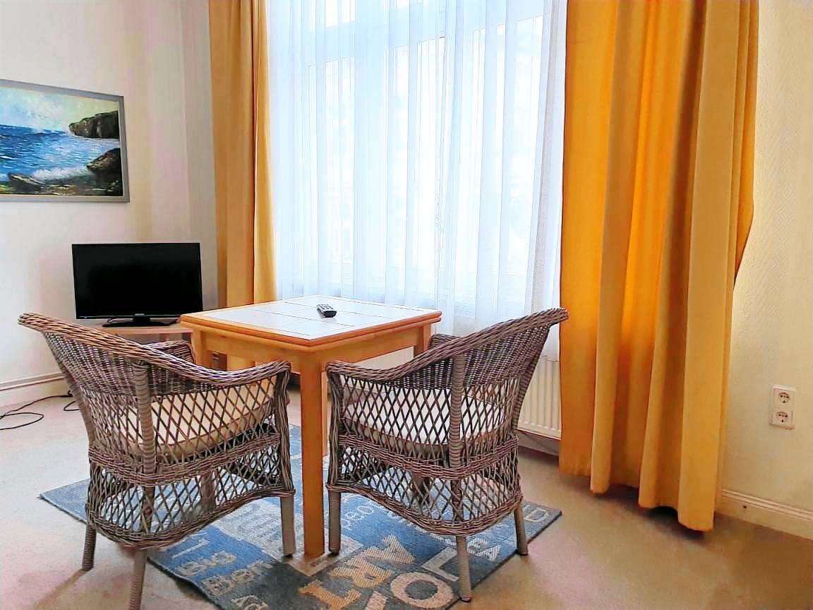 Das Nichtraucher-Appartement befindet sich in der ersten Etage und ist 70m² groß. Zur hochwertigen Ausstattung der Wohnung gehören Parkettfußböden, Sat-TV und Stereoanlage im Wohnzimmer sowie eine gemütliche Sitzecke. Es ist ein modernes Duschbad mit einer großen Dusche vorhanden. .