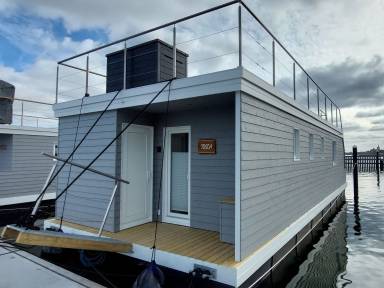 Unser fest im Yachthafen Schwedenschanze liegendes Hausboot, macht einen besonderen Urlaub direkt auf dem Wasser möglich. Genießen sie die Kombination aus Hausboot und komfortabler Ferienwohnung, bei dem auf nichts verzichtet werden muss. Sie haben einen wundervollen Rundumblick über den Hafen, auf Rügen und Stralsund. B. nach Rügen sind naheliegend. .