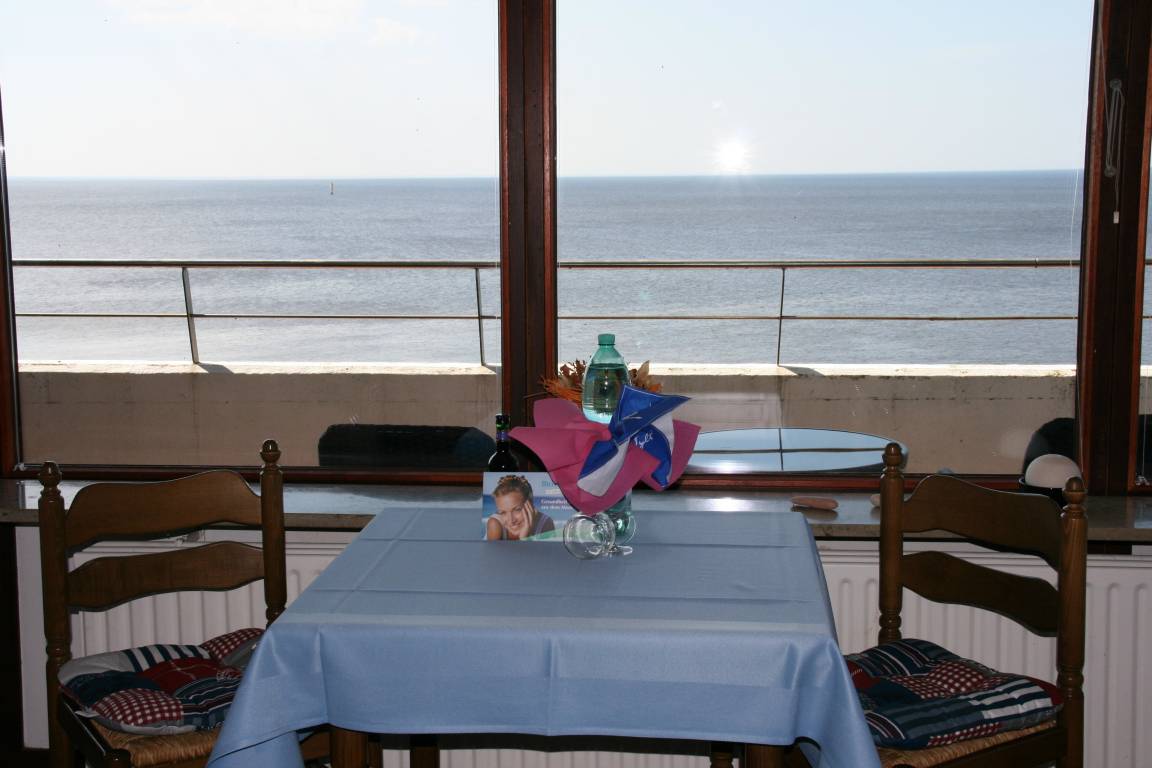 Kleiner Vorflur, neues modernes helles kleines Bad mit Dusche / WC, großer Wohn-/Schlafraum mit zwei Einzelschrankbetten, Sitzgarnitur (Sofa und 2 Sessel), Flachbildfernseher, Radio- und CD-Player, hauseigenes freies WLAN. , Balkon zum Westen - volle SEESEITE. Große sep. 50 qm einschl. Balkone. .