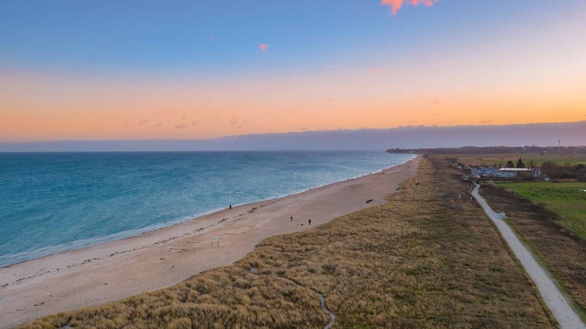Viele Ferienhäuser befinden sich in fußläufiger Entfernung, sodass auch eine spontane Pause mit Blick auf den Sonnenuntergang möglich ist. Der Wind vom Wasser sorgt für Erfrischung, und Spazierwege führen direkt weiter an der Schleimündung entlang.