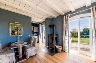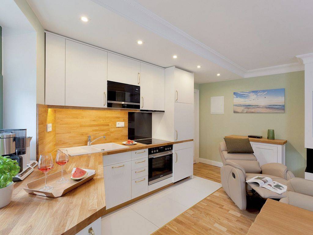 Die hochwertig ausgestattete, freundlich helle Ferienwohnung mit eigenem Eingang befindet sich im Erdgeschoss des Ferienhauses. Es gibt einen großen Wohn- und Essbereich mit voll ausgestatteter Küche. Ein kostenfreier W-LAN-Internetanschluss ist vorhanden. Parkplatz vorhanden. .