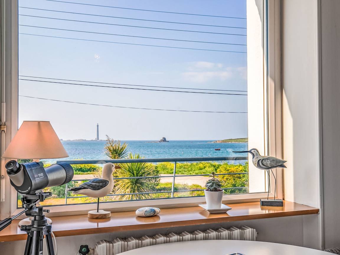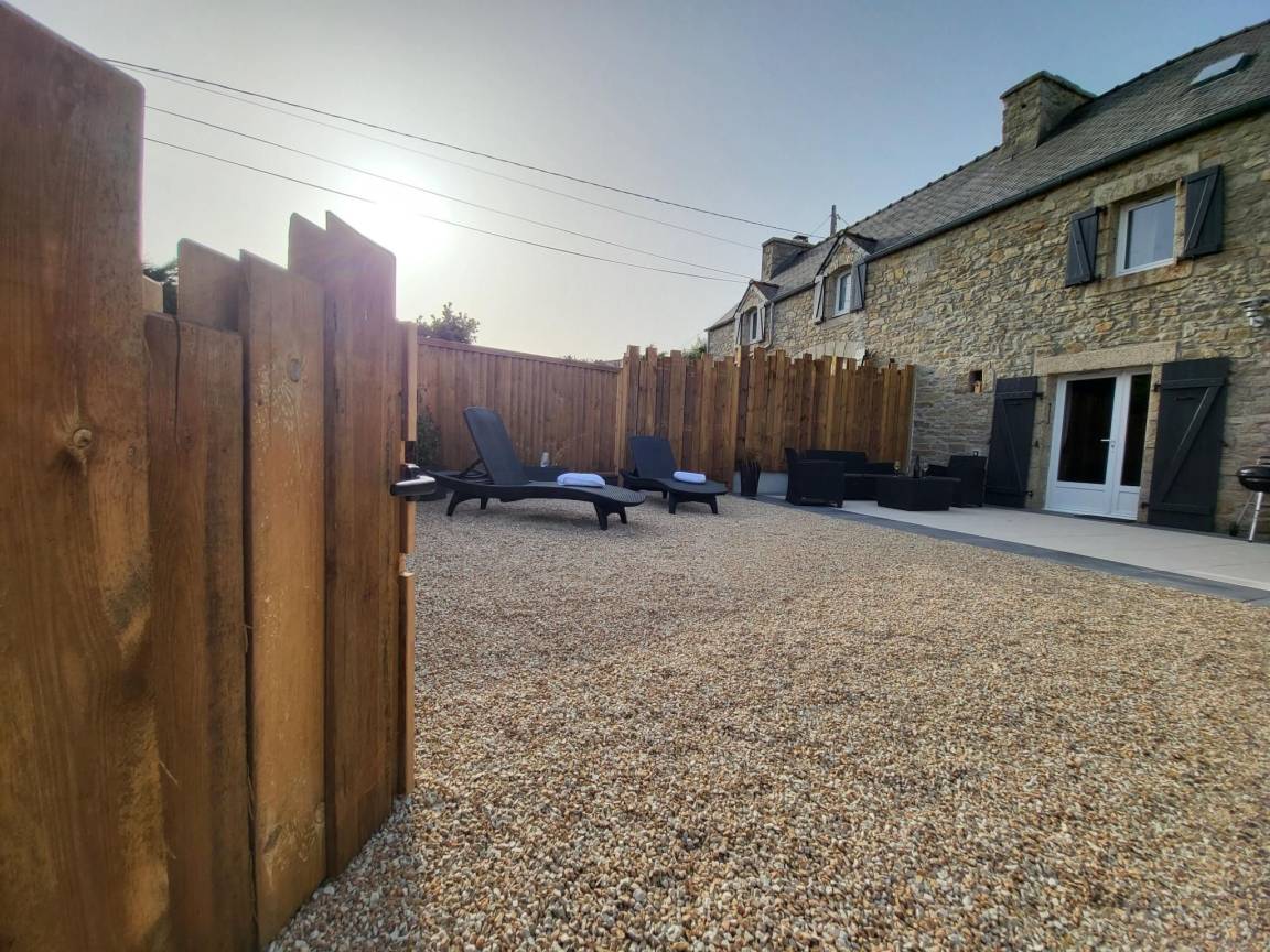"L'Air du Large", 5-Zimmer-Haus 110 m² auf 2 Stockwerken, im erhöhten Erdgeschoss, Nordwestlage. Geräumig und hell, schön und geschmackvoll eingerichtet: grosses Wohn-/Esszimmer mit Esstisch, Sat-TV, Internationale TV-Sender, Flachbildschirm, Radio und DVD. Ausgang zum Garten, zur Terrasse. Kleiner Salon. Sep. WC. Ölheizung. Bett (160 cm, Länge 190 cm). Dusche.