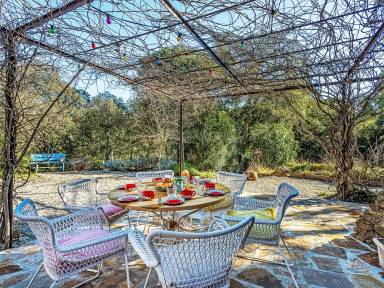 4-Zimmer-Haus 140 m². Gemütlich eingerichtet: Wohn-/Esszimmer mit offenem Kamin (nur Deko), TV (Flachbildschirm). Ausgang zur Terrasse. 1 Zimmer mit 1 franz. Bett (160 cm, Länge 200 cm), Dusche und Klimaanlage. 1 Zimmer mit 1 franz. Bett (160 cm, Länge 200 cm), Bad/WC und Klimaanlage. Ausgang zum Garten. 1 Zimmer mit 1 franz. Sep. WC. E-Heizung. Rauchmelder.