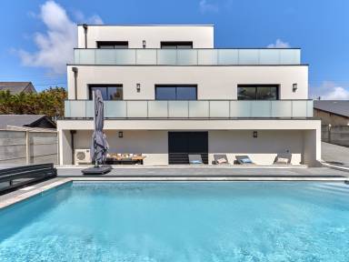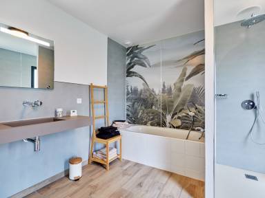 "Les lilas", 6-Zimmer-Haus 120 m² auf 2 Stockwerken. Komfortabel und modern eingerichtet: Wohn-/Esszimmer mit TV (Flachbildschirm). Ausgang zur Terrasse. 1 Zimmer mit 1 Doppelbett (140 cm, Länge 190 cm). 1 Zimmer mit 2 Betten (90 cm, Länge 200 cm) mit sep. WC. Bad/WC. Bodenheizung. Obergeschoss: 1 grosses Zimmer mit 3 Betten (90 cm, Länge 190 cm). Bad/Dusche, sep.