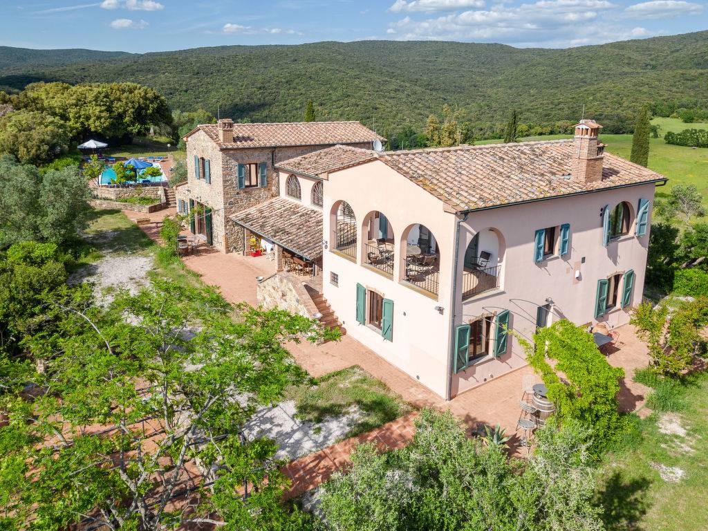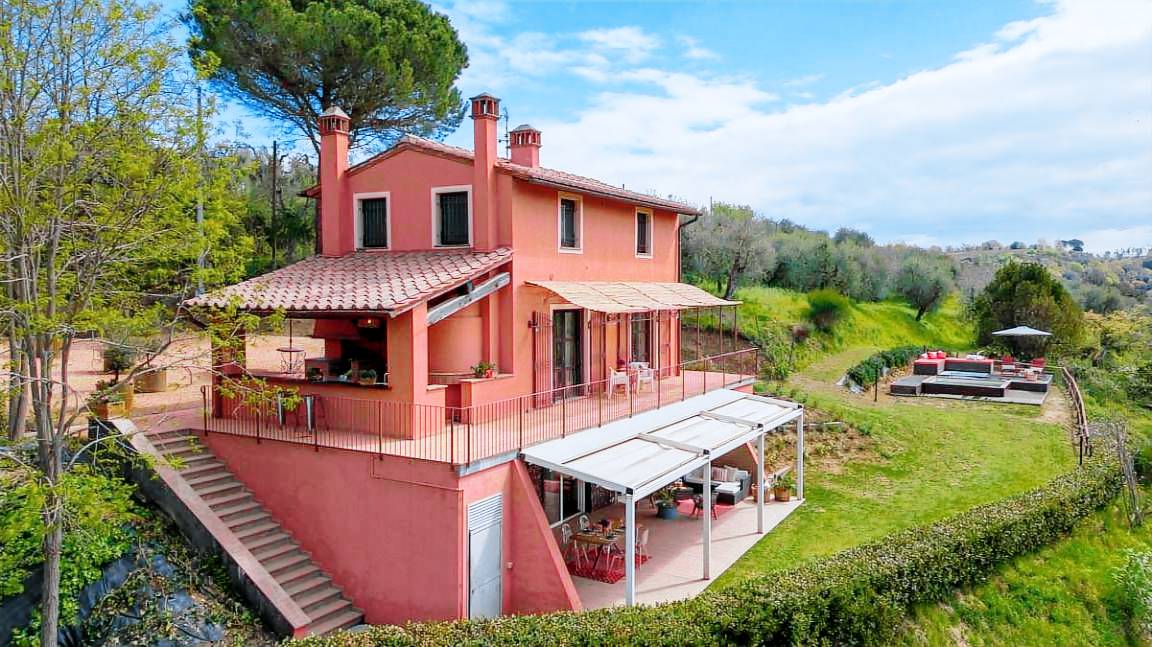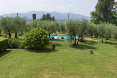 "Villa Marsiliana", 7-Zimmer-Villa 270 m² auf 2 Stockwerken. Geräumig, geschmackvoll und stilvoll eingerichtet: Wohnzimmer mit Panoramafenster mit TV. Ausgang zum Garten. Grosses Esszimmer mit offenem Kamin (nur Deko). Ausgang zum Garten. 1 grosses Zimmer mit 1 Doppelbett, Dusche/Bidet/WC und Klimaanlage. Ausgang zum Garten. Ausgang zum Garten, zur Terrasse.
