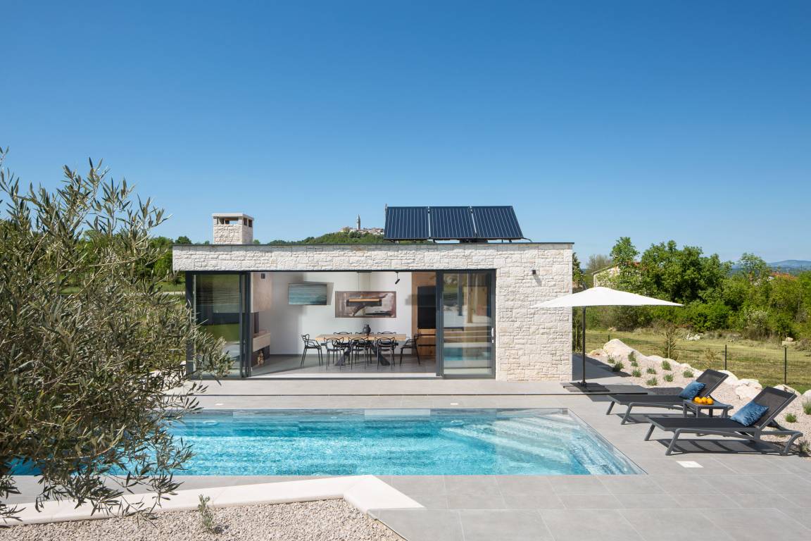 Villa Nar ist eine neugebaute Villa auf erhöhter Lage mit wundervollen Panoramablick an die Westküste Istriens und an das Meer. Die Villa befindet sich am Rande des malerischen Ort Sveti Lovrec, 15 km von Porec und 20 km von Rovinj entfernt. Villa Nar für 6 Personen von 180 qm auf zwei Etagen ist komplett klimatisiert. Hunde sind wilkommen. Basisinformationen.