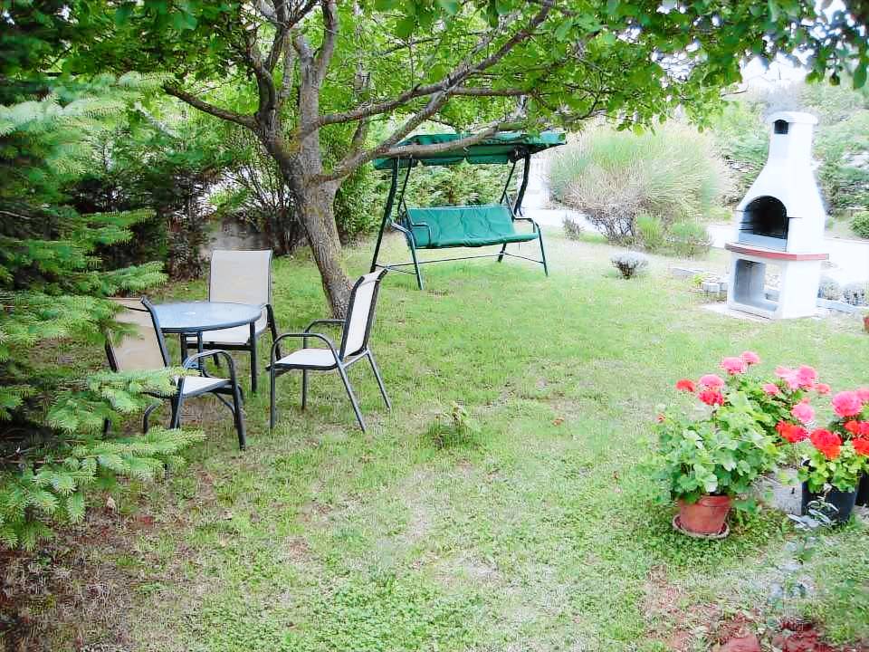3-Zimmer-Haus 100 m² auf 2 Stockwerken. Rustikal eingerichtet: Wohn-/Esszimmer mit Panoramafenster mit offenem Kamin und Sat-TV (Flachbildschirm). Ausgang zur Terrasse. Offene Küche (4 Kochplatten, Backofen, Geschirrspüler, Mikrowelle, Tiefkühler, elektrische Kaffeemaschine). Sep. WC. Obergeschoss: 1 Zimmer mit 1 franz. 1 Zimmer mit 1 franz. Ausgang zur Terrasse.
