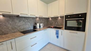 Waschmaschine. Weiters gibt es eine Elektroheizung die das Haus auch in Abwesenheit auf min. 18° C hält. Im ersten Stock sind drei Schlafzimmer. Eines mit zwei Doppelbetten, eines mit einem Doppelbett und eines mit einem Doppelbett und einer ausziehbaren Couch wo gemütlich zwei Personen schlafen können.